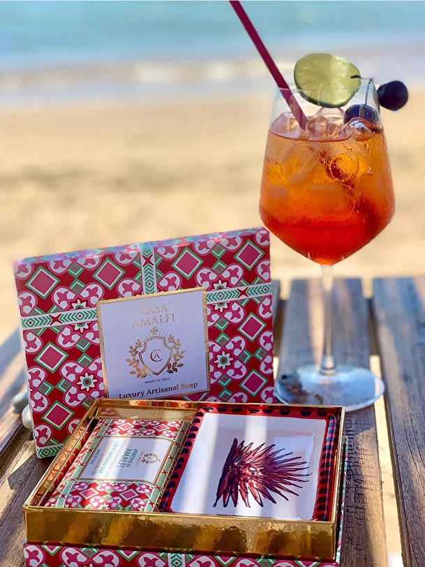 Transport yourself on the sunny shores of the Amalfi Coast with our Spritz di Frutta body scrub. This exfoliating cocktail, infused with the richness of shea butter and the richness of jojoba oil, performs a delicate dance on your skin, gently sweeping away dead cells while hydrating it with ultra-fine microparticles.