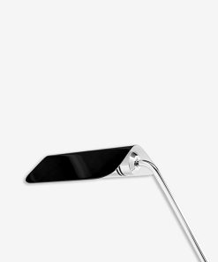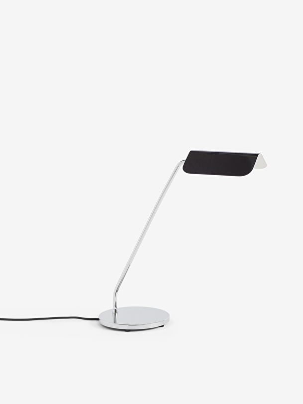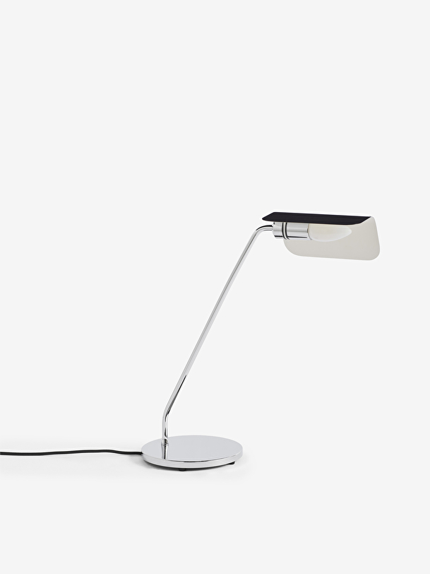 Taking inspiration from the classic Banker's Light lamp, British designer John Tree has fused archetypal references with his contemporary, colorful sensibility to create the Apex lamp. The folded steel shades create a shaped silhouette roof, inspiring the lamp's name and providing a graphic contrast with the chrome bases. Apex offers a functional lighting solution for a multitude of spaces and uses, whether as a task lamp on a desk, a reading lamp on a bedside table, or a point of light on shelves.
