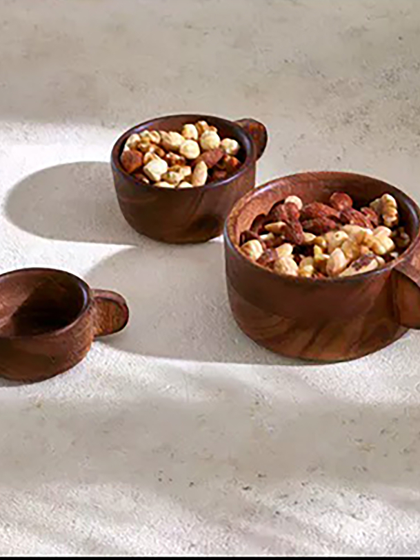 With their round and primitive shapes, the bowls of the Ayla collection are part of a minimalist and authentic decoration. Made of walnut-stained mango wood, these small bowls are available in three sizes. Perfect for storing small everyday objects such as keys, they can also be used together, to hold your jewelry and accessories.
