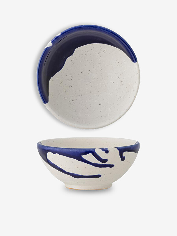 The Okayama bowl from Bloomingville brings a fresh touch to the table with its delicate light shade, contrasted by the flowing glaze in a beautiful metallic blue color. Use it as a breakfast bowl or for serving. Due to the nature of the glaze and the handmade technique, each bowl will be unique and will vary.