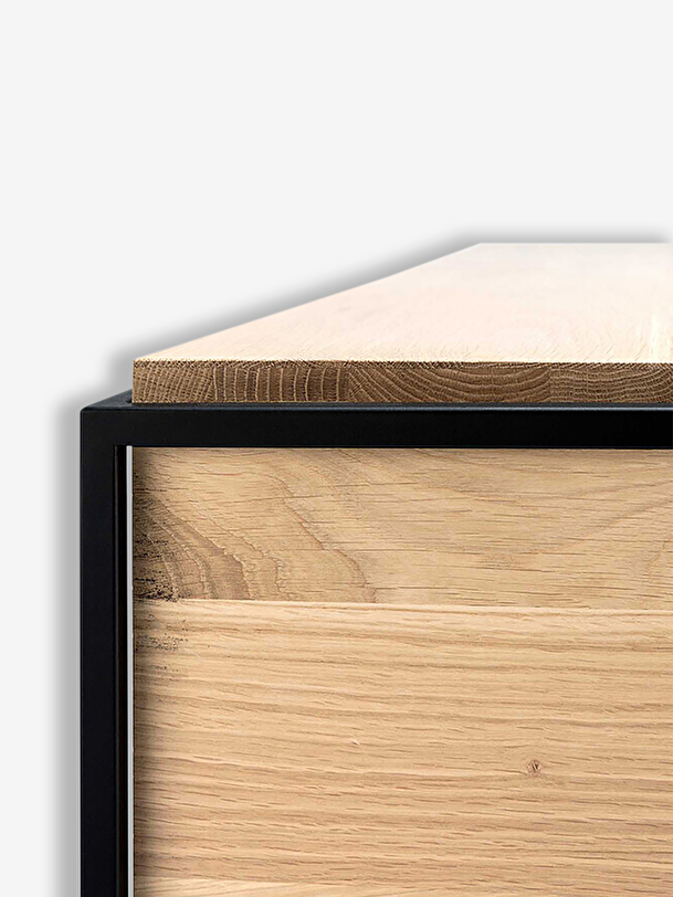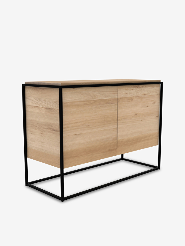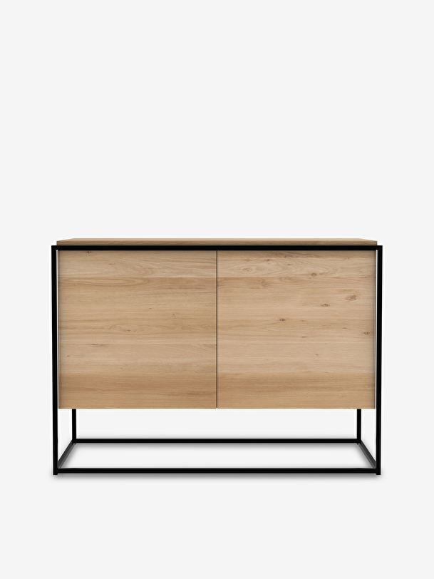 Designed by Sascha Sartory in a very refined style, the Monolit sideboard is composed of a solid oak body inserted in a graphic and airy black metal frame. With two doors behind which are shelves, this functional sideboard has all the assets to complete the layout of a space with minimalist decor. In the interest of authentic beauty, the wood selected from European forests may contain knots and natural cracks that make each piece of furniture a unique piece. The Monolit collection is available in several models.