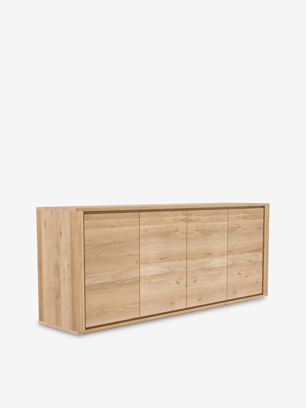 Inspired by Scandinavian furniture collections, the Shadow sideboard is characterized by straight lines, its light wood and a robust silhouette that make it a strong piece for your living room, kitchen or dining room. In the interest of authentic beauty, the wood selected from European forests may contain natural knots and cracks that make each piece of furniture unique. Available in several sizes.