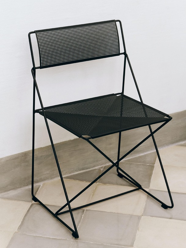La chaise X-Line, conçue en 1977 par Niels Jørgen Haugesen, est un exemple emblématique du mouvement high-tech des années 1970. Sa structure en acier finement travaillée forme un “X” distinctif, offrant à la fois légèreté visuelle et robustesse structurelle. Rééditée par HAY, cette chaise minimaliste s’intègre parfaitement dans divers environnements, qu’ils soient intérieurs ou extérieurs.
