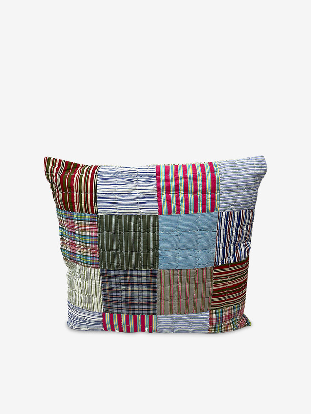 Un jeu de rayures vives et de carreaux dépareillés, comme sorti d’un vestiaire d’été détourné. Ce coussin en coton mise sur le contraste et l’art du mélange, pour apporter de la texture et de la couleur à votre intérieur. Chaque panneau raconte une autre histoire, avec l’allure brute d’un objet fait main. À poser seul ou en accumulation, pour un effet à la fois cool et assumé.