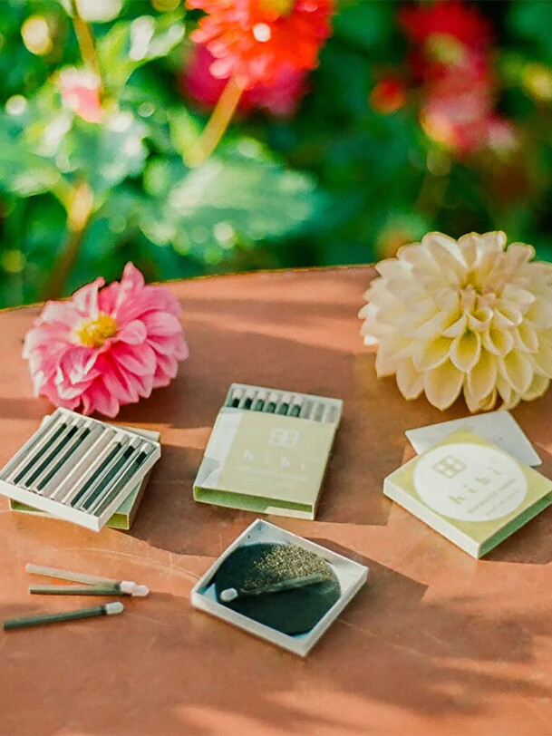 Hibi is an incense, born from the meeting of two Japanese crafts. Hibi offers a new way to enjoy scents. Light a Hibi stick like a match and relax for 10 minutes thanks to its natural scents. Each Hibi incense box comes with a fireproof mat, no need for an additional holder. Made in Kobe, Japan. Available in classic, large and gift boxes.