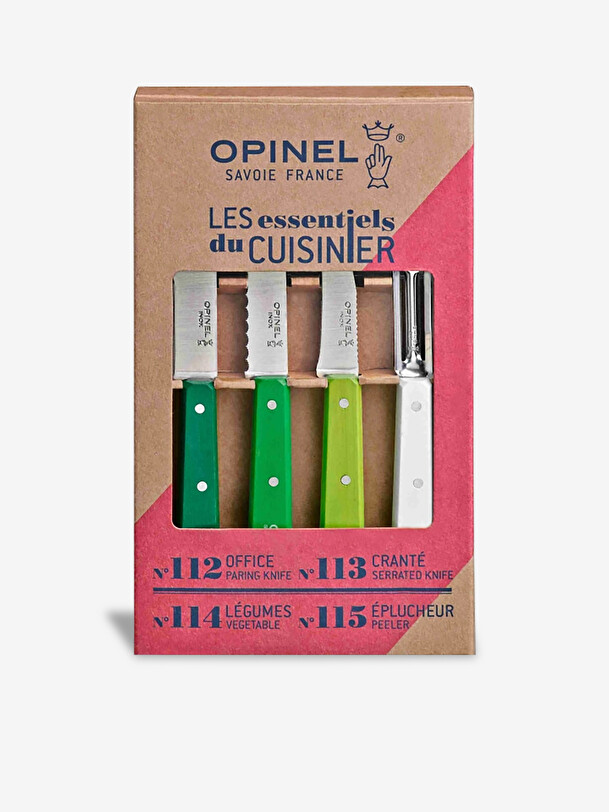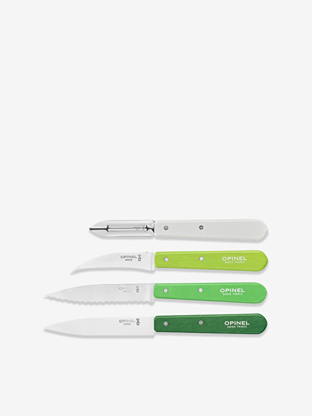 Paring knife, serrated knife and peeler made in France. Vegetable knife made in Portugal.