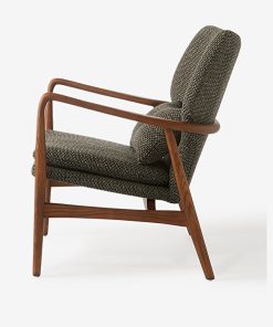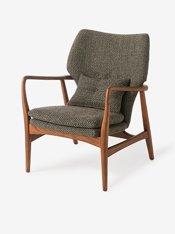 The silhouette of the Peggy armchair, an ode to the Scandinavian style of the 50s, is composed of a polished ash structure (100% FSC) with a rounded and refined look and an enveloping seat covered in mottled fabric, decorated with 3 buttons on the backrest. The woodwork is artisanal, while maintaining impeccable finishes. A timeless style that will slip into your interior, from the bedroom to the living room, emphasizing a sober and elegant intention. A small decorative cushion covered in the same fabric as the seat is provided.