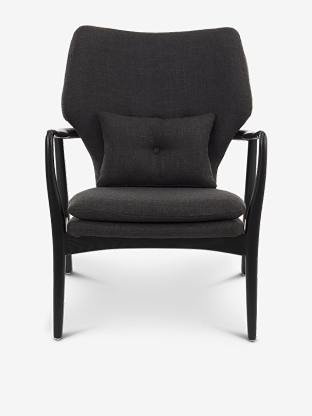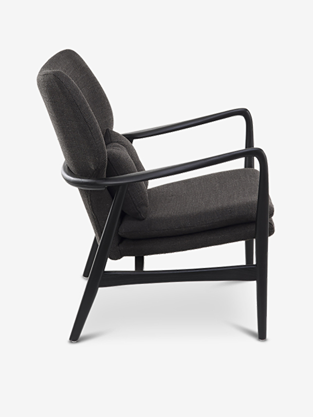 The silhouette of the Peggy armchair, an ode to the Scandinavian style of the 50s, is composed of a polished ash structure (100% FSC) with a rounded and refined look and an enveloping seat covered in mottled fabric, decorated with 3 buttons on the backrest. The woodwork is artisanal, while maintaining impeccable finishes. A timeless style that will fit into your interior, from the bedroom to the living room, emphasizing a sober and elegant intention. A small decorative cushion covered in the same fabric as the seat is provided.