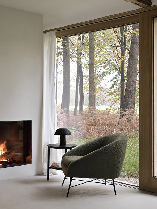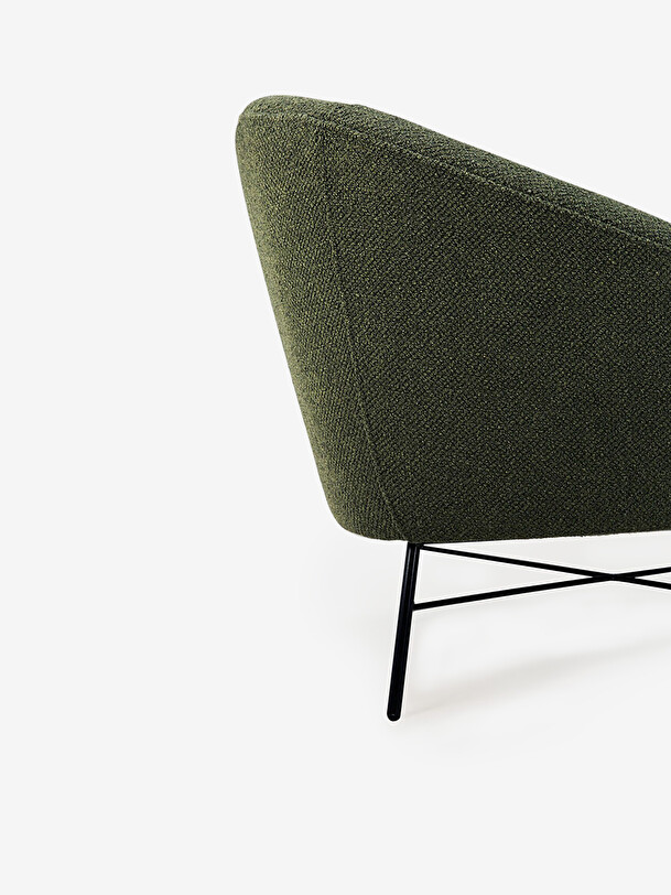Drawing its inspiration from the 50s, the Barrow armchair is distinguished by its irresistible vintage charm. The lightness of the metal base combined with a high-end fabric covering creates a timeless design that will fit into any interior. Let yourself go to the warm embrace of this armchair with its striking comfort.