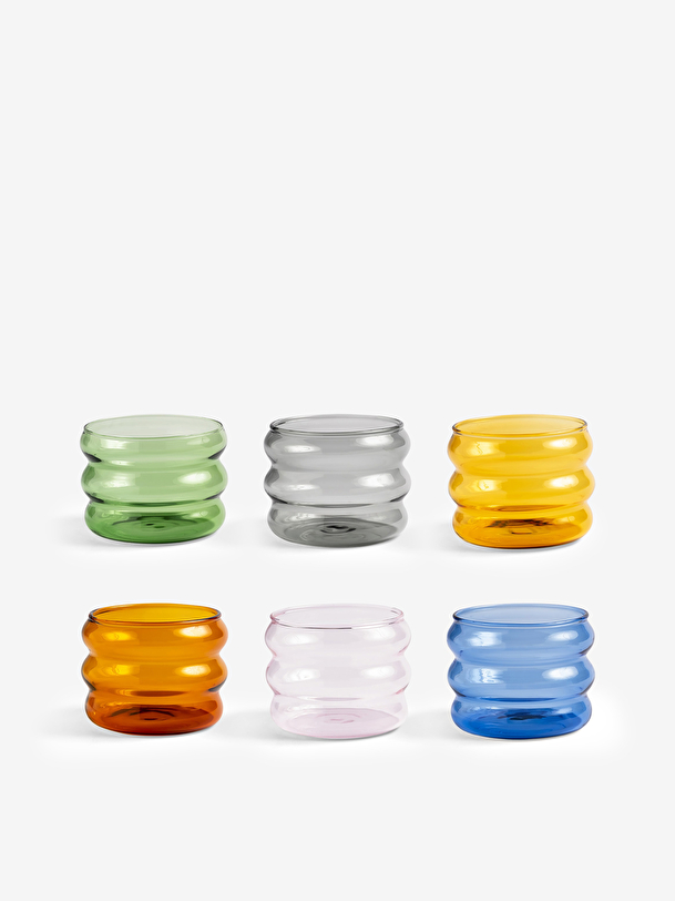 These colourful chubby glasses feature rounded, rippled sides. Each boasting a different vibrant hue, giving you the freedom to mix and match or choose your favourite colour.