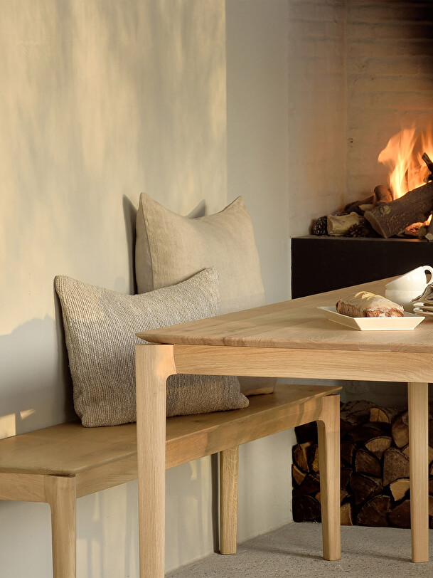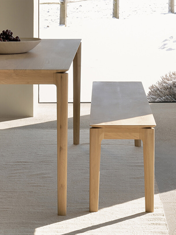 With a sleek design and meticulous finishes, the Bok bench features beveled edges that bring lightness and natural charm to your home. The iconic airy shape and solid construction of the Bok line make it a timeless design that you will enjoy for years to come. This bench will pair with the dining table from the same series.It can also be placed in the hallway or at the foot of the bed. For authentic beauty, the wood selected from European forests may contain natural knots and cracks that make each piece of furniture unique. Available in various sizes.
