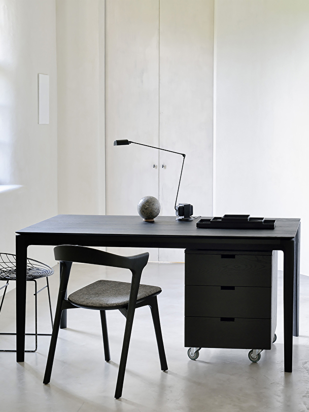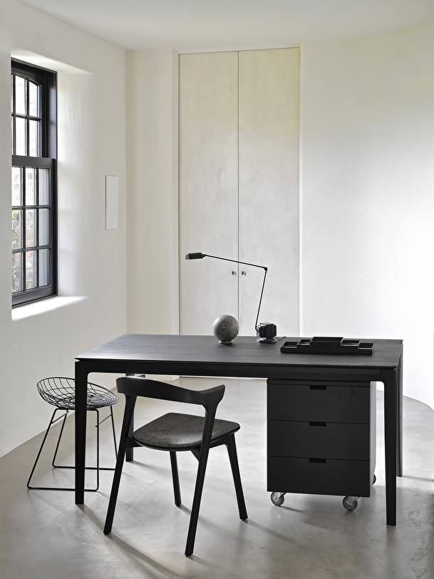 With the Bok table collection, designer Alain van Havre has created a series of solid oak tables with a slightly offset tabletop detail. The iconic airy shape and solid construction of the Bok line make it a timeless design that you can enjoy for years to come in your dining room or kitchen. The chairs in the Bok collection are a perfect match for this table. For authentic beauty, the wood selected from European forests may contain natural knots and cracks that make each piece of furniture unique. Available in several sizes
