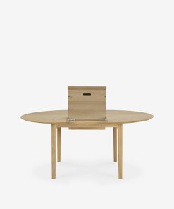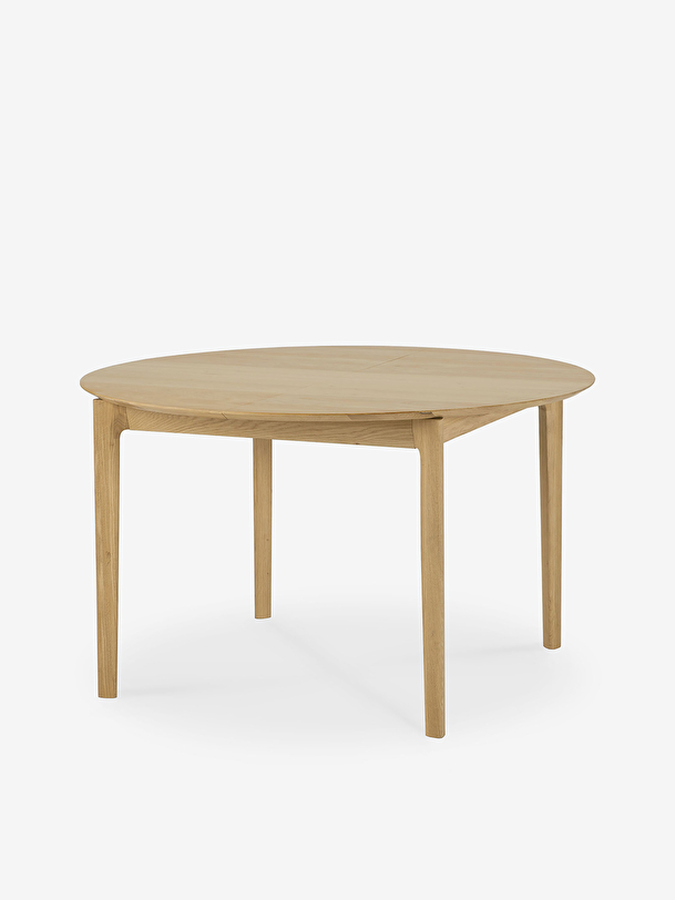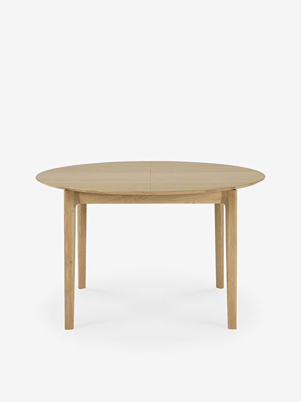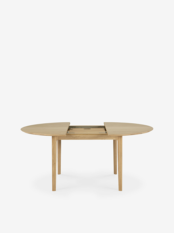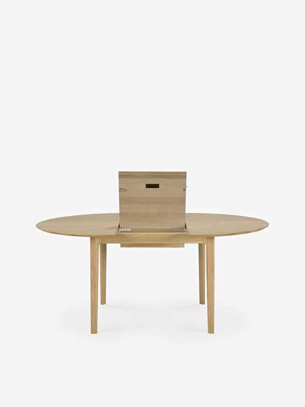 The Bok extendable round table in solid oak designed by Alain van Havre offers a perfect solution for a limited space. With an internal extension, the round table designed for four people expands to accommodate more guests. The iconic airy shape and solid construction of the Bok line make it a timeless design that you will enjoy for years to come. For authentic beauty, the wood selected from European forests may contain natural knots and cracks that make each piece of furniture unique. Dimension : 129/179x129xh.76cm