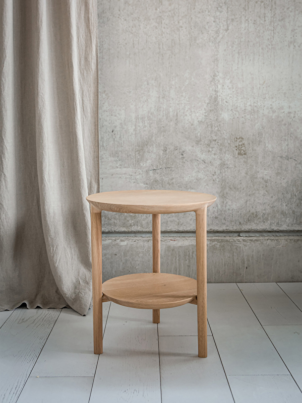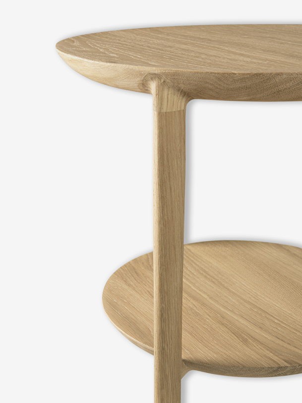 The Bok side table is designed to draw attention to the objects you choose to display.A tapered base and beveled tops characterize the collection by designer Alain van Havre, which includes dining tables and chairs in various sizes and finishes. For authentic beauty, the wood selected from European forests may contain natural knots and cracks that make each piece of furniture unique.