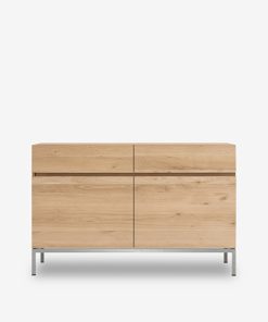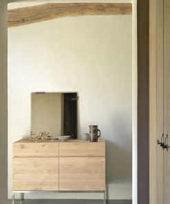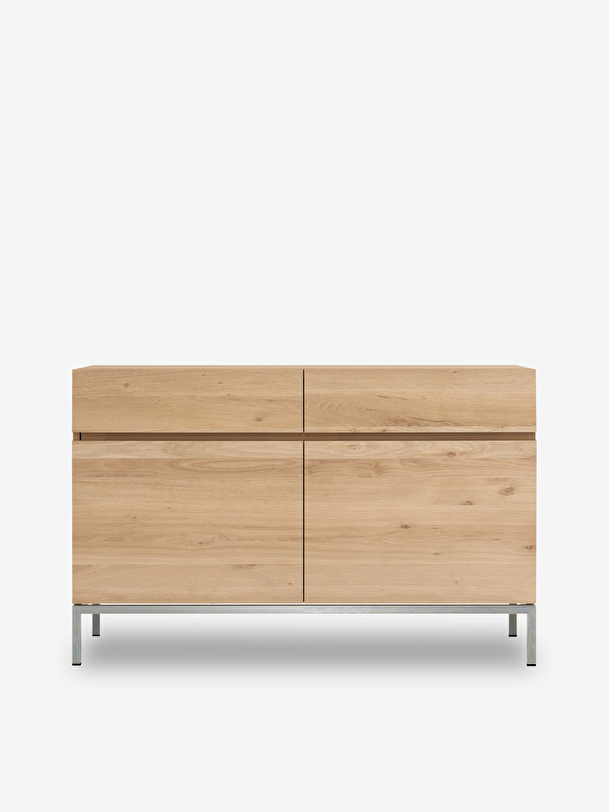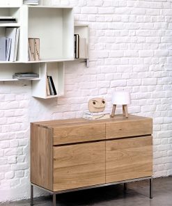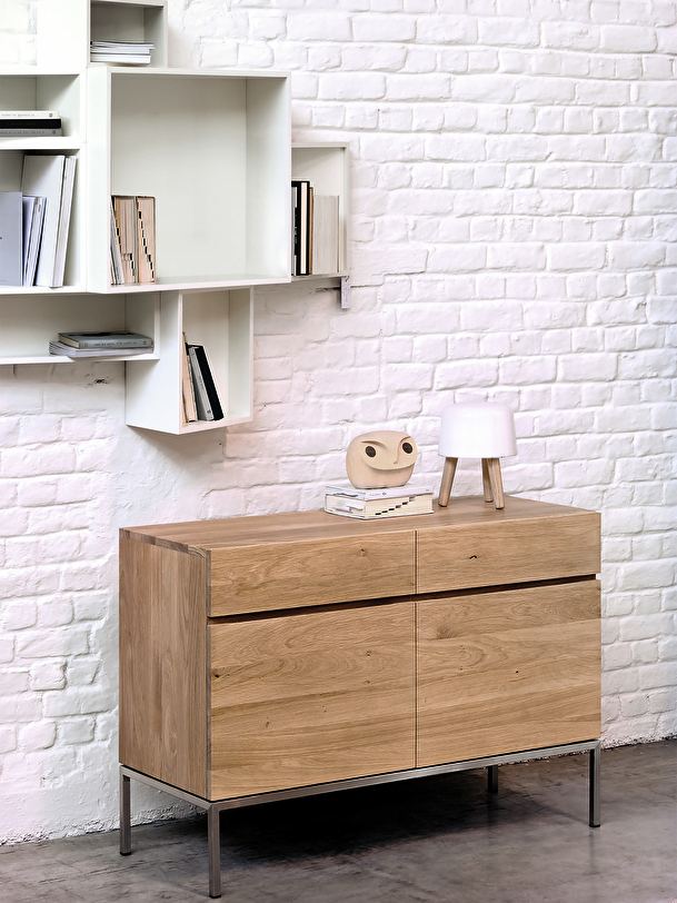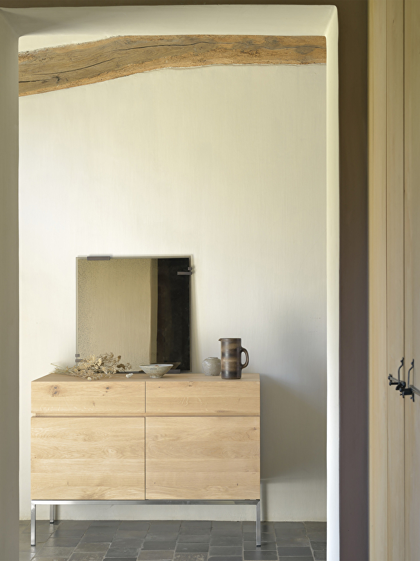 The Ligna collection offers a series of storage units with a clean, minimalist look. The solid oak body rests on a straight base. This sideboard with two doors and two drawers optimizes your needs in the living room, kitchen or bedroom by way of the desk. For authentic beauty, the wood selected from European forests may contain natural knots and cracks that make each piece of furniture unique. Available in several sizes