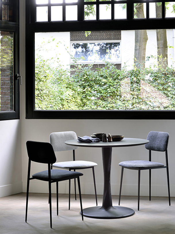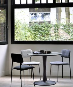 With the Torsion table collection, the designer Alain van Havre signs a series highlighting the technical work of wood with a twisted solid oak table base. Simple at first glance, the detail of this round table lies in the intricacy of its leg and makes it an elegant sculptural piece that will find its place in your dining room or kitchen. The chairs from the Bok collection are a perfect match for this table. The oak selected by Ethnicraft comes exclusively from European forests. Its authenticity revealing the beauty of nature can reveal the natural knots and cracks of the wood, giving each element a unique character. Available in various sizes and finishes.
