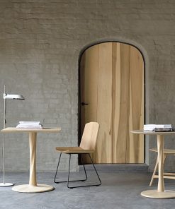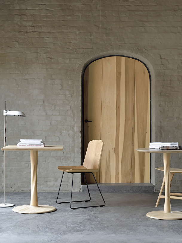 With the Torsion table collection, the designer Alain van Havre signs a series highlighting the technical work of wood with a twisted solid oak table base. Simple at first glance, the detail of this round table lies in the intricacy of its leg and makes it an elegant sculptural piece that will find its place in your dining room or kitchen. The chairs from the Bok collection are a perfect match for this table. The oak selected by Ethnicraft comes exclusively from European forests. Its authenticity revealing the beauty of nature can reveal the natural knots and cracks of the wood, giving each element a unique character. Available in various sizes and finishes.