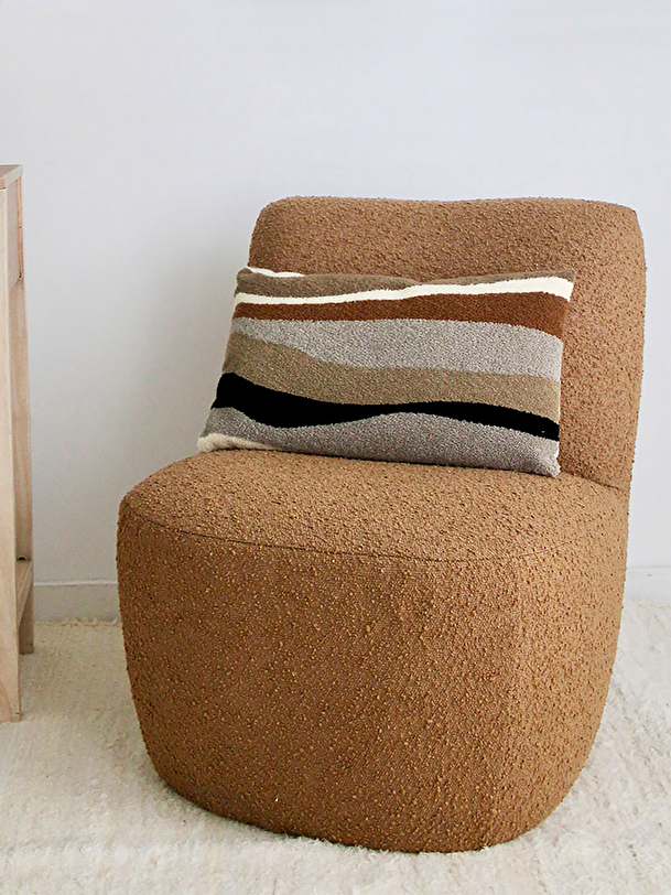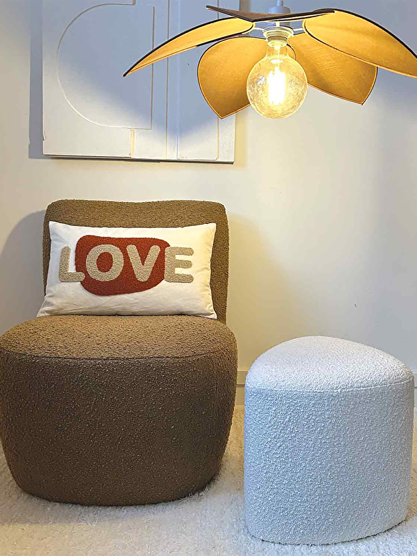 The Petty collection is available in a palette of bright, contrasting shades. It’s up to you to create your own by combining several colors. This compact armchair is composed of an ergonomic backrest and a soft seat, covered in textured terry fabric. It fits everywhere thanks to its small size. The pouf is an undeniable decorative element and so practical. Its organic shape gives it a unique side.