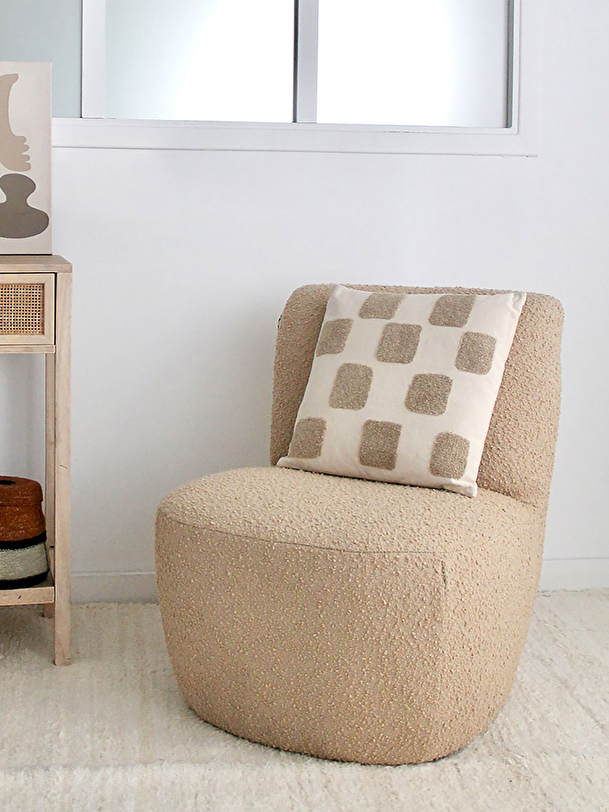 The Petty collection is available in a palette of bright, contrasting shades. It's up to you to create your own by combining several colors. This compact armchair is composed of an ergonomic backrest and a soft seat, covered in textured terry fabric. It fits everywhere thanks to its small size. The pouf is an undeniable decorative element and so practical. Its organic shape gives it a unique side.