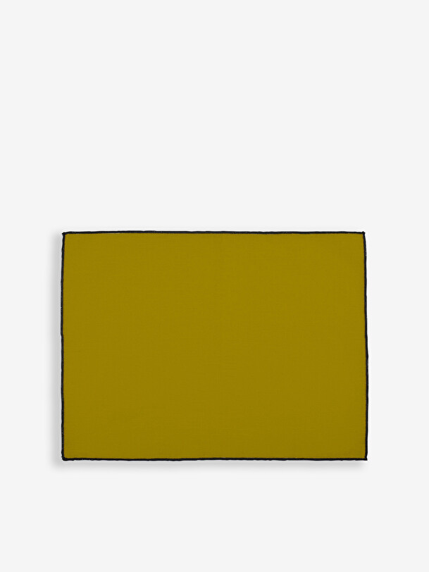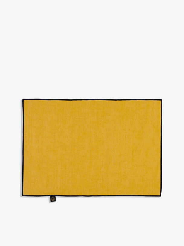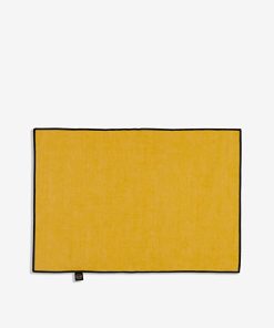 The Borgo set from Harmony Haomy is a set with a coated side and an uncoated side. The apron is made of 100% linen. It has a small black quilting around it. It measures 35×48 cm, it is a standard size.