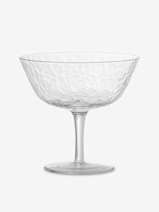These cocktail glasses or champagne glasses with a modern and subtle design will dress your table with great elegance. An original crumpled finish on the surface of the glass will make your table irresistible. Combine them with other glasses from the same collection for a unique party table!