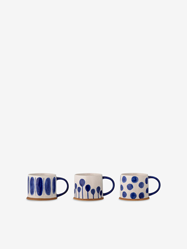 The Creative Collection Linora mugs are a set of 3 unique stoneware mugs. They all have different designs in shades of blue and natural (unglazed) feet. Perfect for mixing and matching with each other or with your favorite mugs at home.