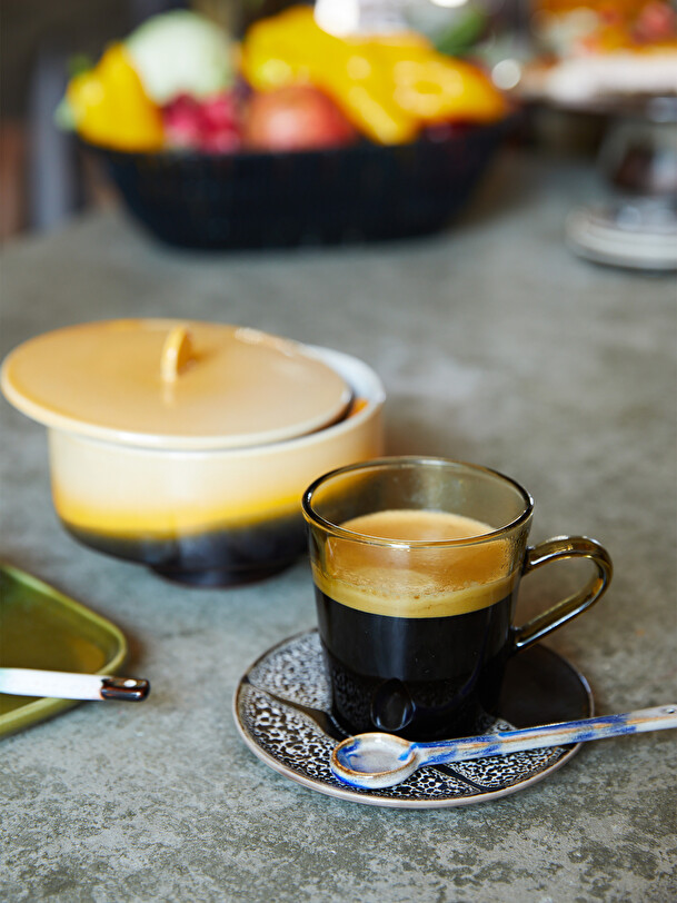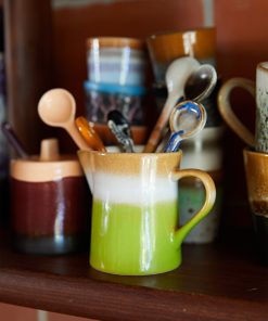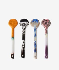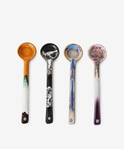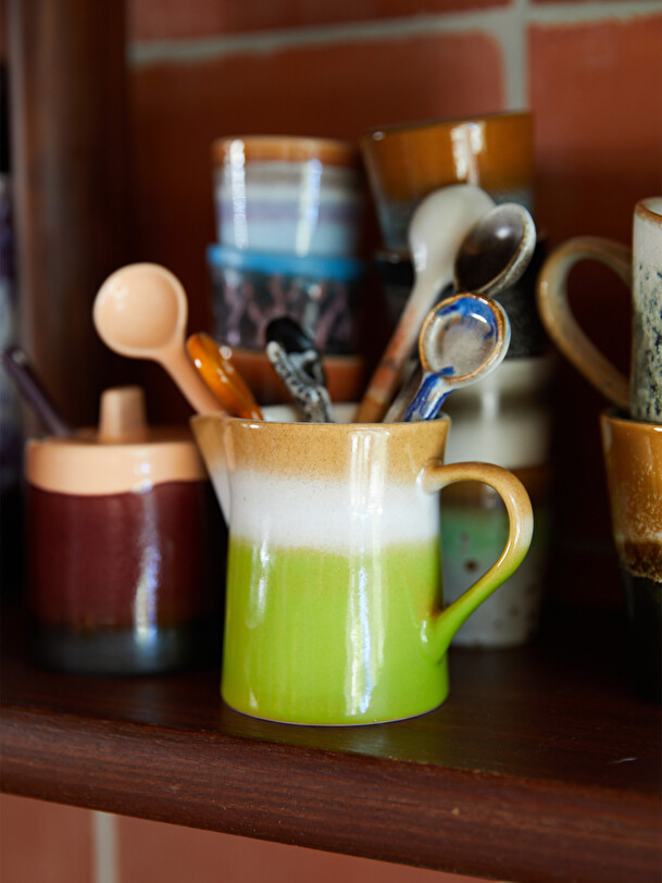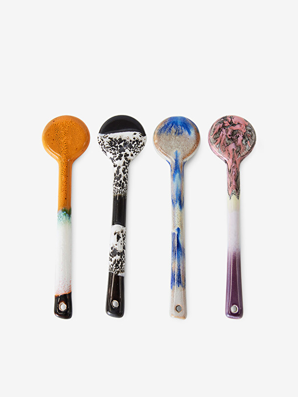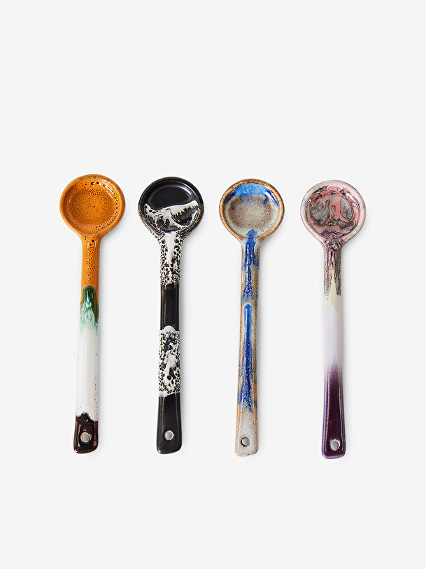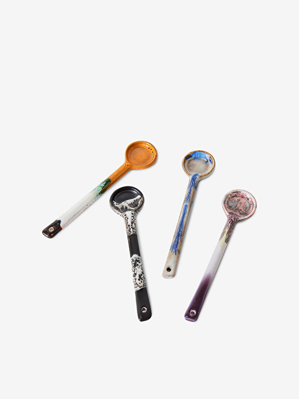 For those who appreciate the last drop of foam in their cup of cappuccino, or who simply use sugar or milk. The ceramic spoons from the 70s are not only practical, but also playfully colorful. Available in a set of four, each with its own finish.