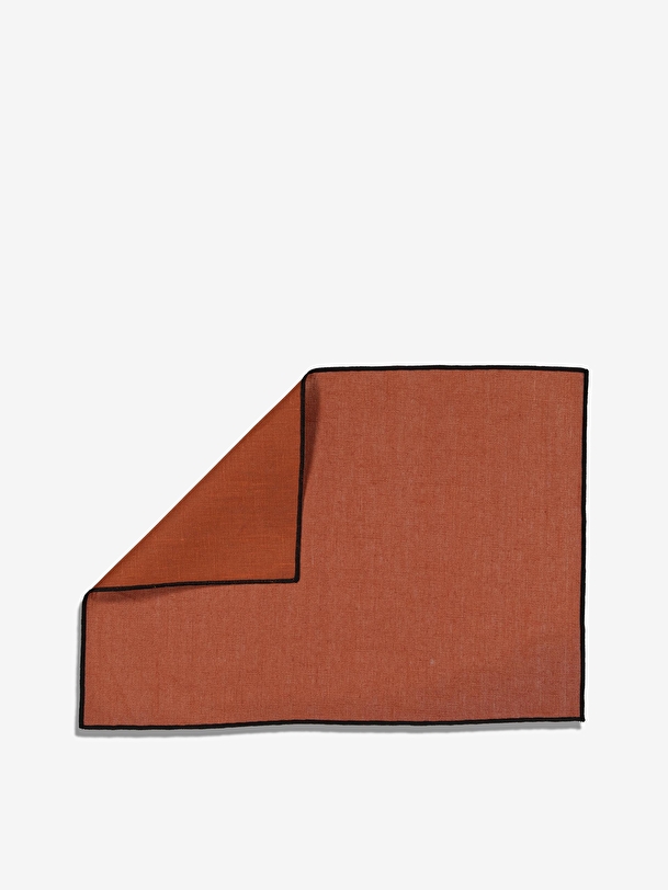 The Borgo set from Harmony Haomy is a set with a coated side and an uncoated side. The apron is made of 100% linen. It has a small black quilting around it. It measures 35×48 cm, it is a standard size.