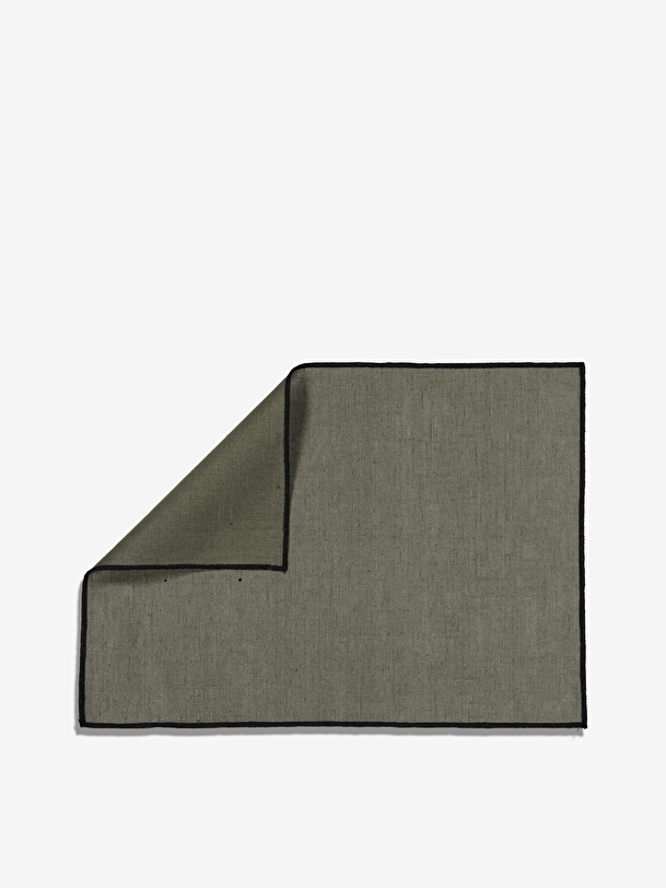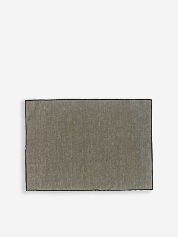 The Borgo set from Harmony Haomy is a set with a coated side and an uncoated side. The apron is made of 100% linen. It has a small black quilting around it. It measures 35×48 cm, it is a standard size.