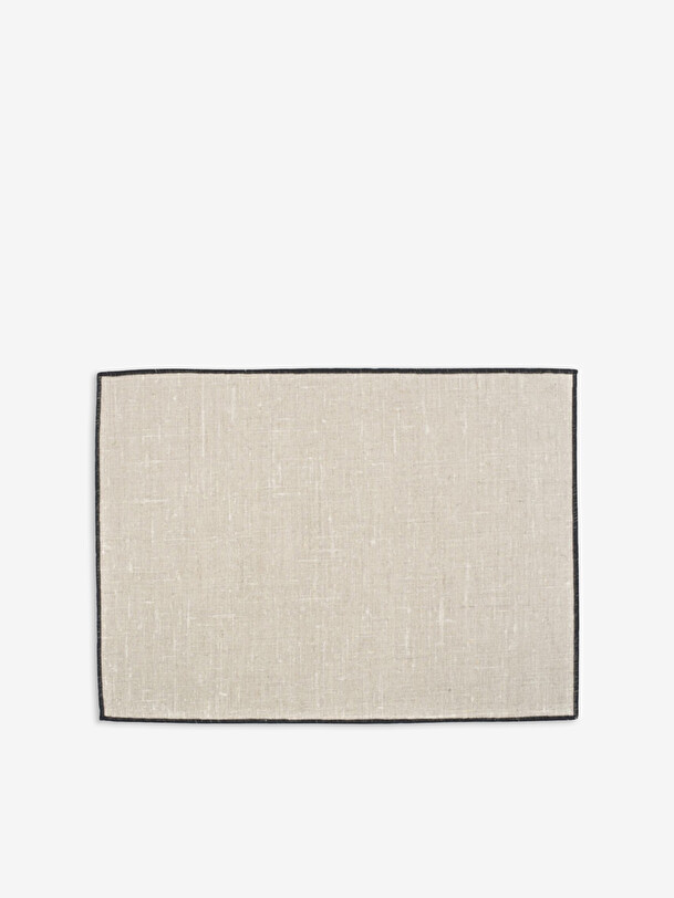 The Borgo set from Harmony Haomy is a set with a coated side and an uncoated side. The apron is made of 100% linen. It has a small black quilting around it. It measures 35×48 cm, it is a standard size.
