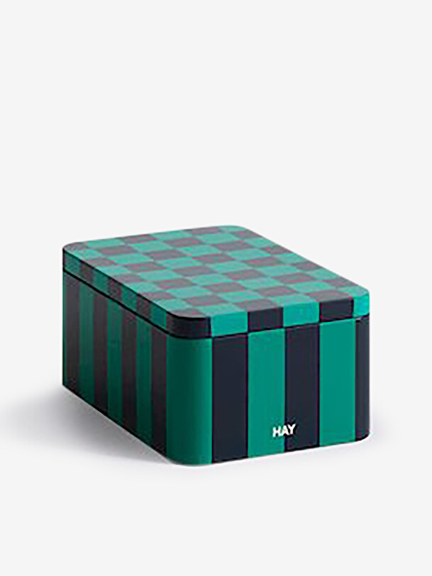 HAY’s tin cans are a collection of functional and decorative storage boxes, featuring colorful checkered patterns and a glossy finish. The lid and container are perfectly aligned, giving a sleek and seamless look, while ensuring an airtight seal suitable for storing dry foods. Available in a wide range of sizes, shapes and patterns, the tin cans can be decoratively placed on shelves or tables in the home to store and organize various items.
