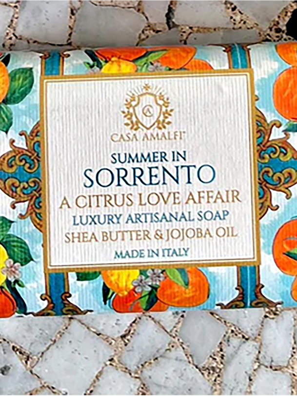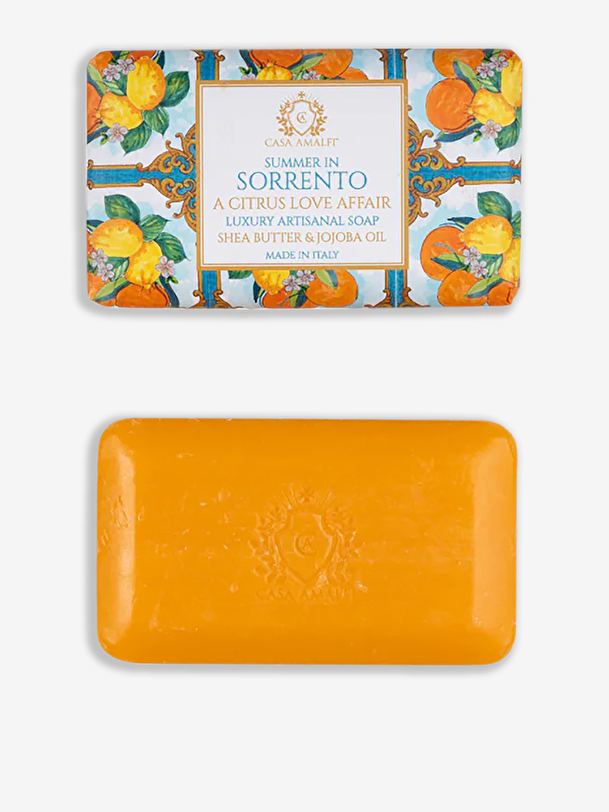 Be seduced by the exquisite allure of our luxurious soap, a harmonious fusion of radiant citrus and exotic spices that evoke the timeless essence of endless beach days and sunsets bathed in golden hues.