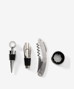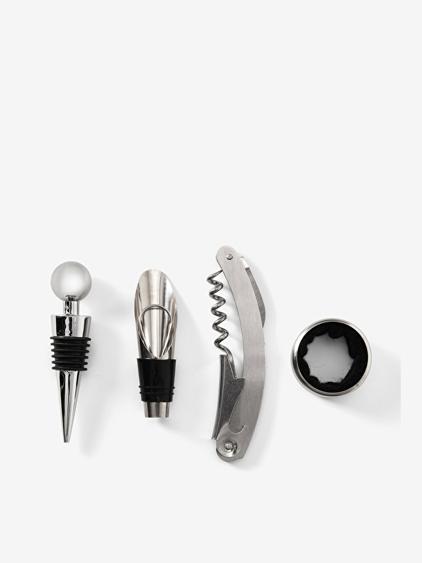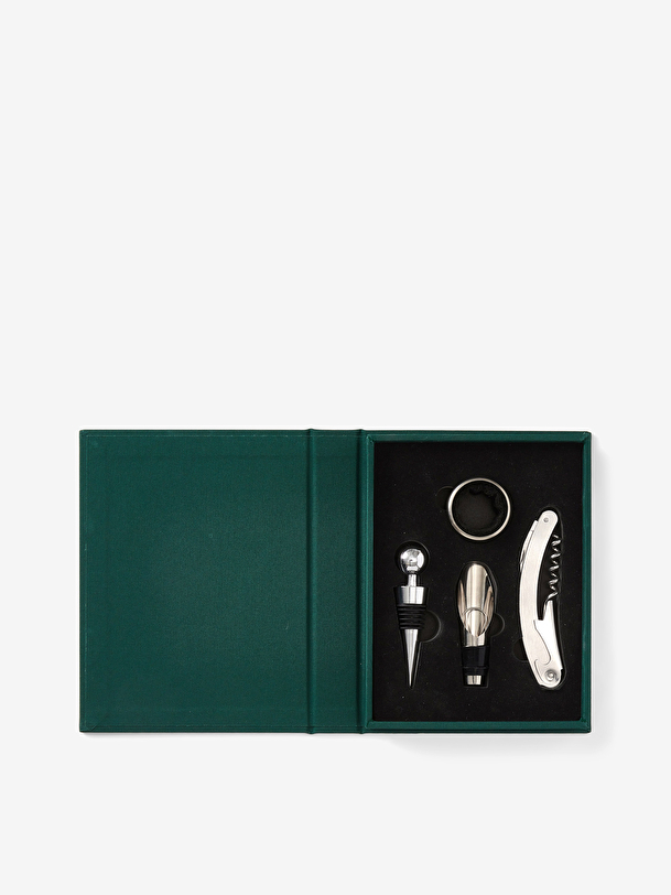 Discover the essential kit to perfect your wine experience – a refined toolkit in an elegant book-shaped box that makes the perfect farewell gift. Inside you’ll find a bottle opener, stopper, pourer and collar, each an essential tool for enjoying wine. All products are made of stainless steel and are dishwasher safe.