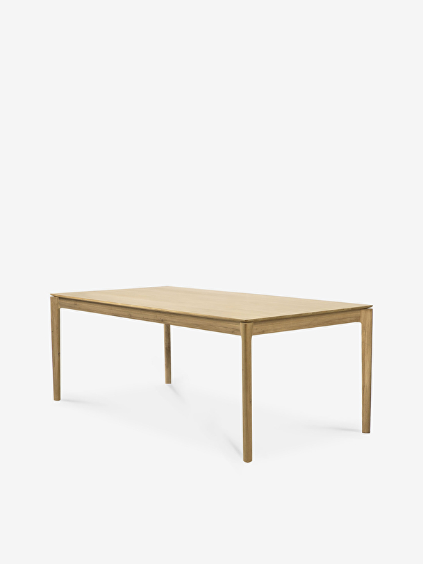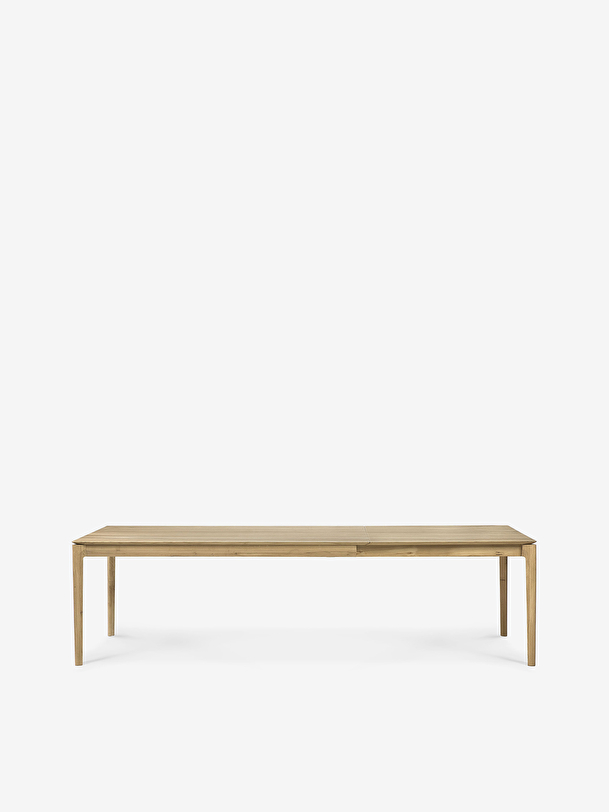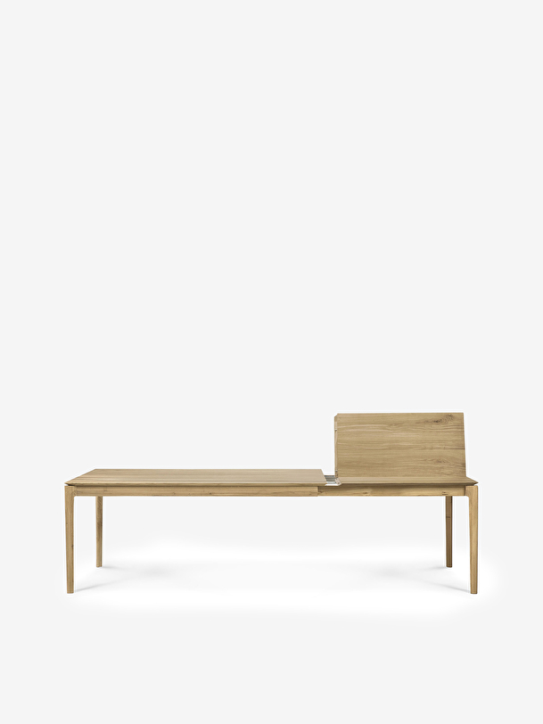 With the Bok table collection, designer Alain van Havre has designed a series of solid oak tables with a slightly offset top detail that makes them unique. The iconic airy shape and solid construction of the Bok range make it a timeless design that you can enjoy for many years in your dining room or kitchen. This table has an integrated, easy-to-handle extension that can accommodate more guests, without any apparent discontinuity in the wood grain pattern. The chairs from the Bok collection are a perfect match for this table. In the interests of authentic beauty, the wood selected from European forests may contain knots and natural cracks that make each piece of furniture unique. Available in several sizes