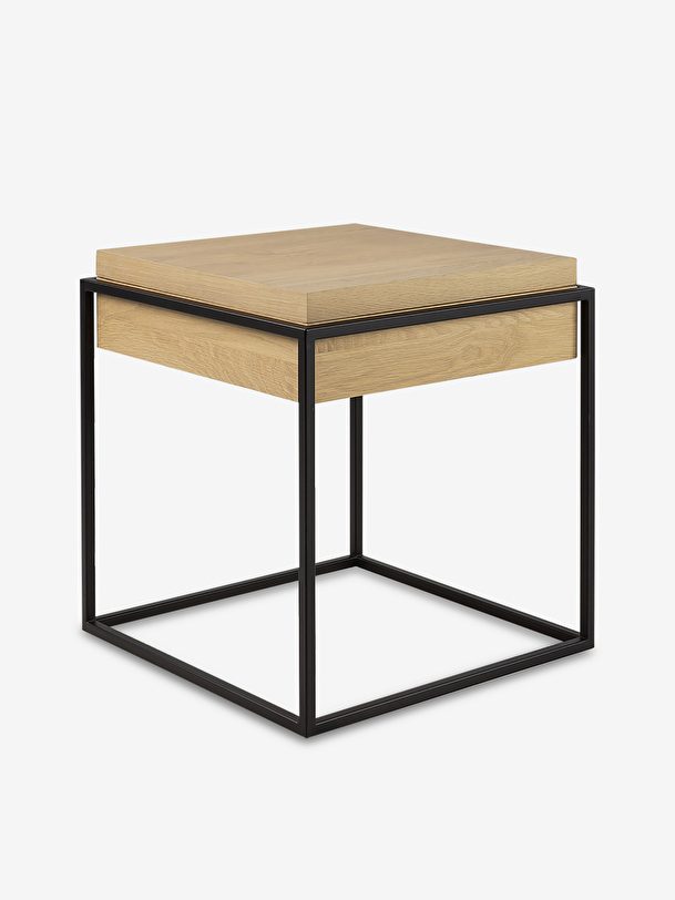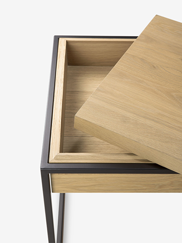 From the Monolit collection designed by Sascha Sartory in a very refined style, this side table is composed of a solid oak body inserted in a graphic and airy black metal frame. In the interest of authentic beauty, the wood selected from European forests may contain knots and natural cracks that make each piece of furniture a unique piece. The Monolit collection is available in several models.