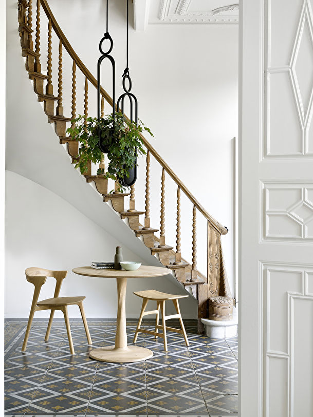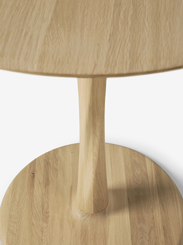 With the Torsion table collection, designer Alain van Havre has designed a series that highlights the technical work of wood with a twisted solid oak table leg. Simple at first glance, the detail of this round table lies in the complexity of its leg and makes it an elegant sculptural piece that will find its place in your dining room or kitchen. The chairs from the Bok collection go perfectly with this table. The oak selected by Ethnicraft comes exclusively from European forests. Its authenticity, revealing the beauty of nature, can reveal the natural knots and cracks in the wood, which gives each element a unique character. Available in several sizes and finishes.