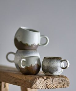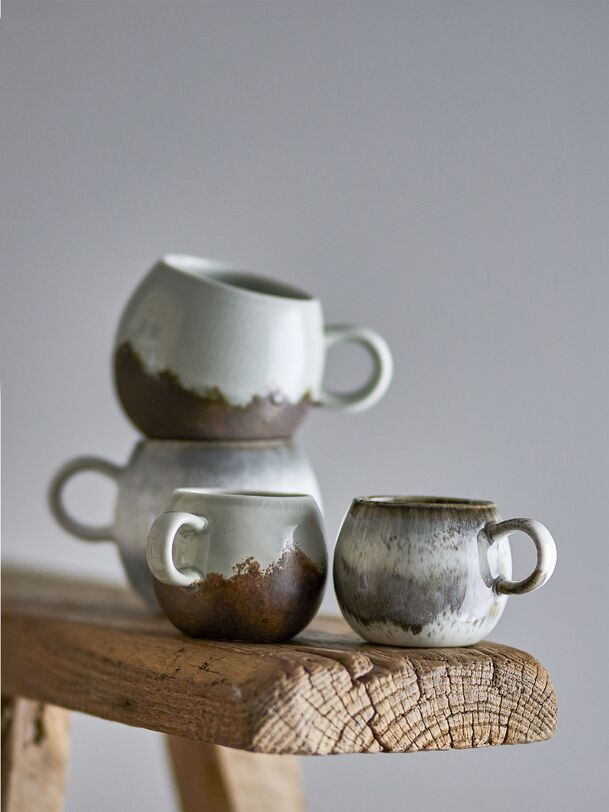 Une forme simple, des tons naturels – gris, brun, ivoire – et un émail réactif qui rend chaque pièce différente. En grès, compacte et pleine de caractère, elle est parfaite pour un café serré. Une petite tasse qui fait le lien entre usage quotidien et matière brute. Dimensions : D7xH6 cm.