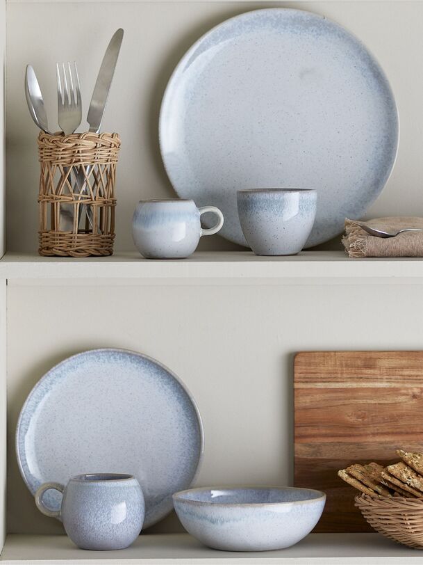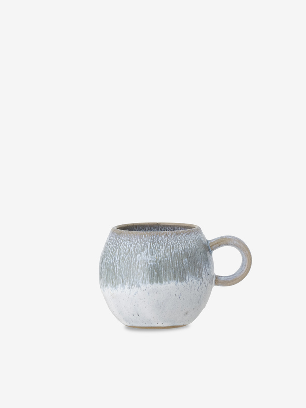 Grès émaillé dans des tons clairs et bleutés, avec des variations qui rendent chaque pièce unique. Une silhouette simple, une anse confortable, un look intemporel. Pour un café du matin ou une tisane du soir, c’est une tasse du quotidien, avec juste ce qu’il faut de détail. Dimensions : D9xH8 cm.