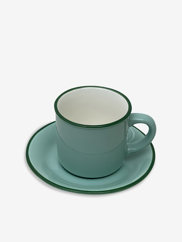 Un vert sauge doux, équilibré par un liseré vert foncé : cette tasse en grès émaillé trouve le juste ton. Intérieur blanc cassé, ligne droite, soucoupe assortie — l’ensemble joue la carte de la simplicité maîtrisée. Parfaite pour accompagner vos cafés du matin ou vos pauses l’après-midi, c’est une pièce discrète mais affirmée, pensée pour durer. Dimensions : 5,5 x 5,5 cm.
