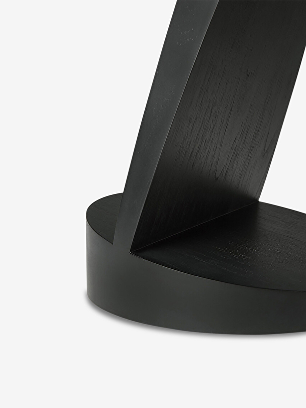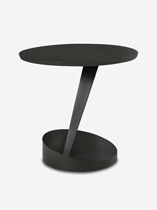 Designed by Alain van Havre, this side table changes its appearance depending on the angle of view! Made of stained solid teak, it transcribes the assembly of several geometrical shapes that we imagine in movement. Dressed with a small nomadic lamp or simply to put magazines, it will easily slip into the living room, the bedroom or the desk.