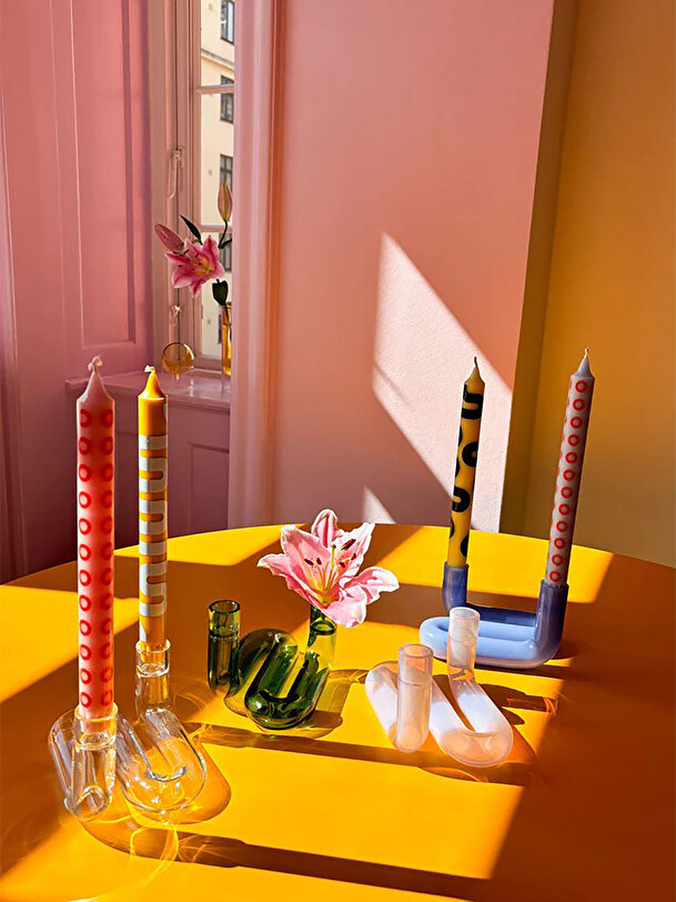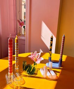 Create a warm and welcoming atmosphere with this elegant candle holder. Its design is distinguished by its organic, wavy shape that creates an impression of movement and lightness. The candle holder is simple and fits perfectly on a coffee table, shelf or sideboard. Its minimalist design allows it to easily fit into any interior. If the glass needs to be cleaned, you can easily wash it in warm water with soap. If stearin has settled on the glass itself, you can use boiling water.
