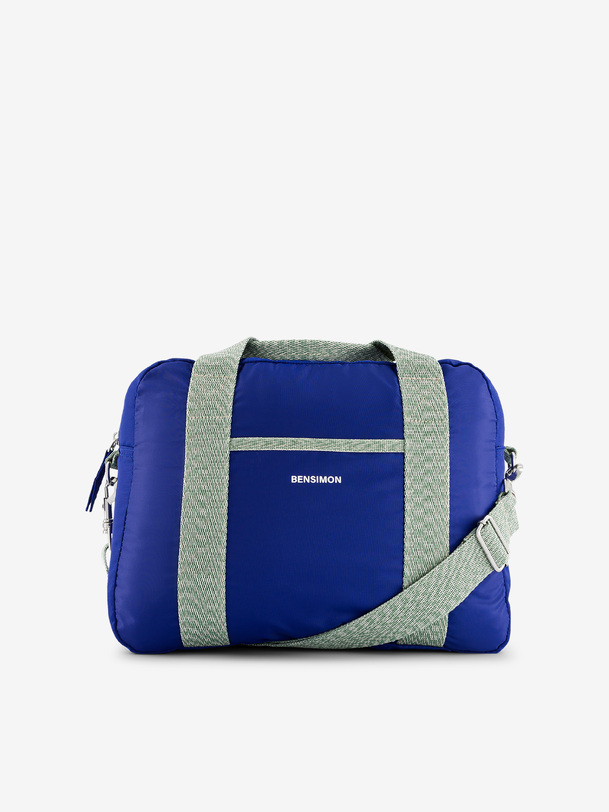 Medium-sized All Day bag. Featuring 3 pockets, including one on the front, one for the main bag, and one inside with a zipper. Double handle and adjustable strap. Dimensions: 32 x 17 x 26 cm. Zipper closure.