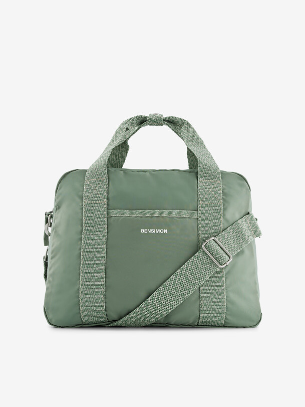 Medium-sized All Day bag. Featuring 3 pockets, including one on the front, one for the main bag, and one zipped interior. Double handle and adjustable handle. Dimensions: 32 x 17 x 26 cm. Zip closure.