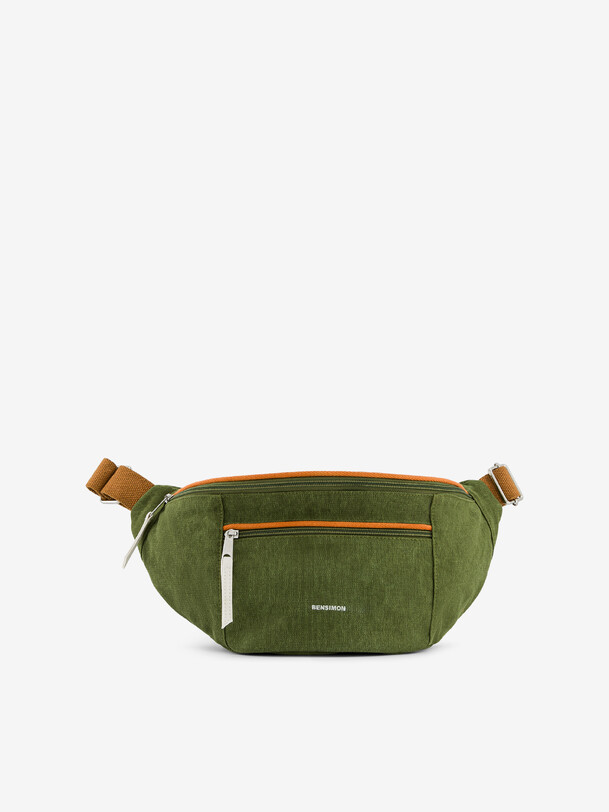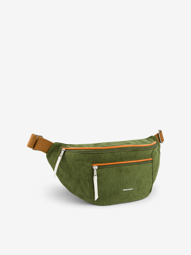 Manhattan fanny pack with a medium capacity. It features an adjustable handle and three practical pockets: a large zippered pocket, a front zippered pocket, and an interior zippered pocket. Bag length: 42 cm, width: 9 cm, height: 17 cm. Zipper closure.
