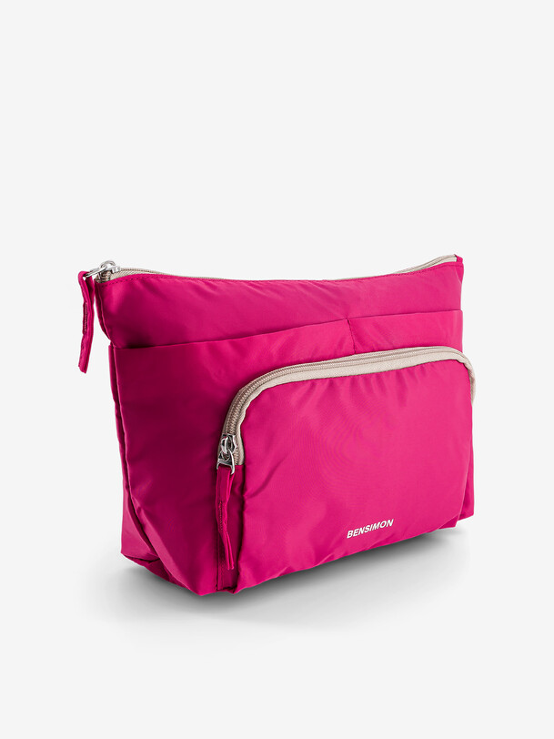 Description: Beauty Pocket toiletry bag with a zipper closure. It features a zippered front pocket and 2 additional pockets on the front. Dimensions: 34 cm long, 9 cm wide, and 20 cm high.