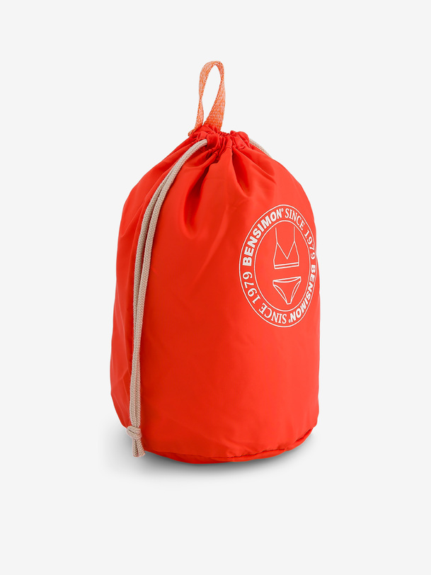 Lingerie storage bag with drawstrings. Handle located on the back. Dimensions: 18 cm long, 18 cm wide, and 30 cm high. Medium capacity.