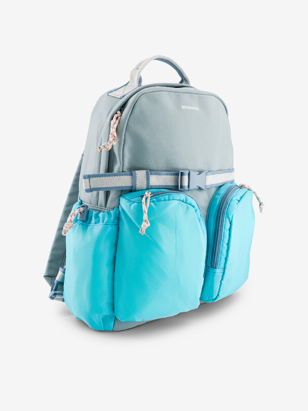 Description: Montfleur backpack with zipper closure. It features a large main zippered pocket, two zippered front pockets, and two slip side pockets. There’s also an interior zippered pocket. Its dimensions are 31 cm long, 12 cm wide, and 38 cm high. The handle is adjustable.