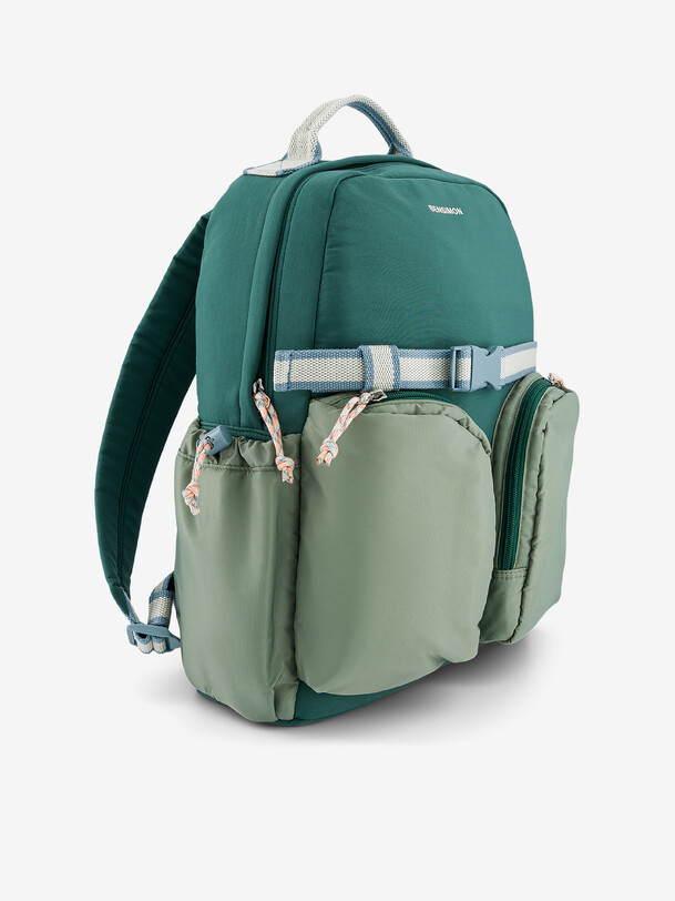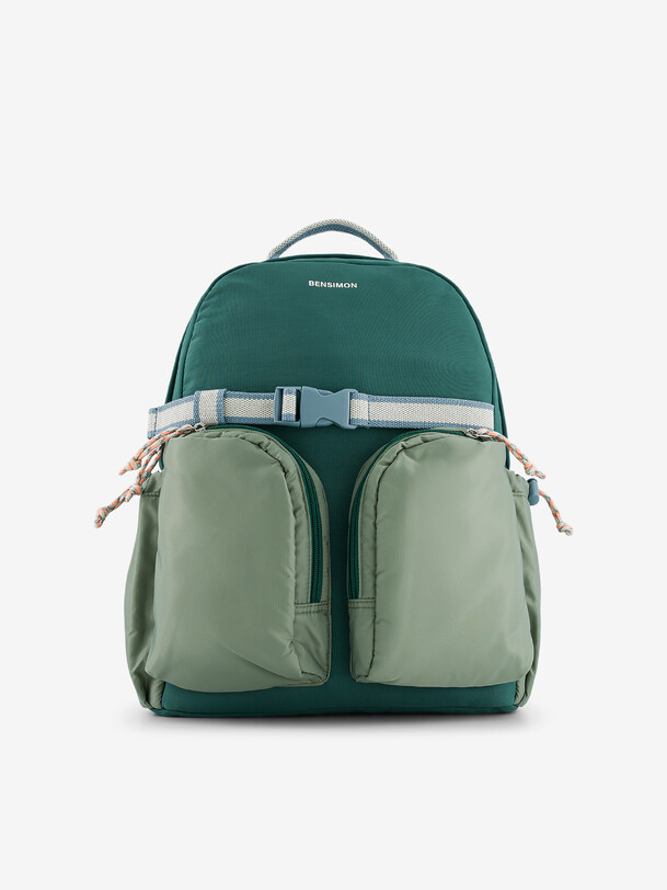 Description: Montfleur backpack with zipper closure. It features a large main zippered pocket, two zippered front pockets, and two slip side pockets. There’s also an interior zippered pocket. Its dimensions are 31 cm long, 12 cm wide, and 38 cm high. The handle is adjustable.