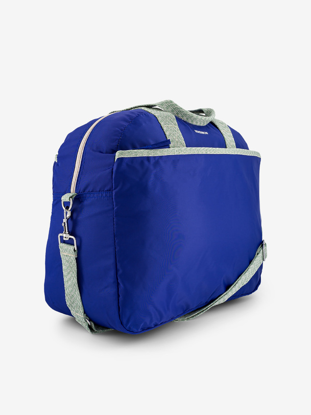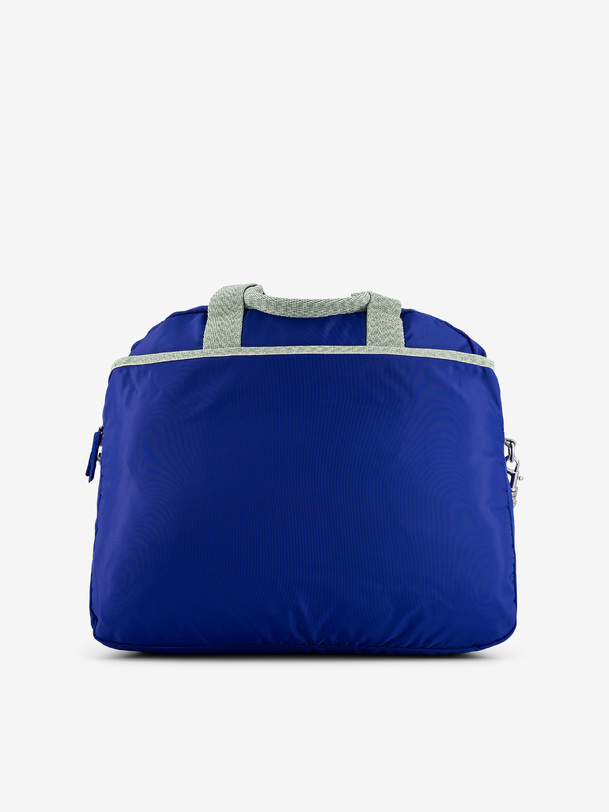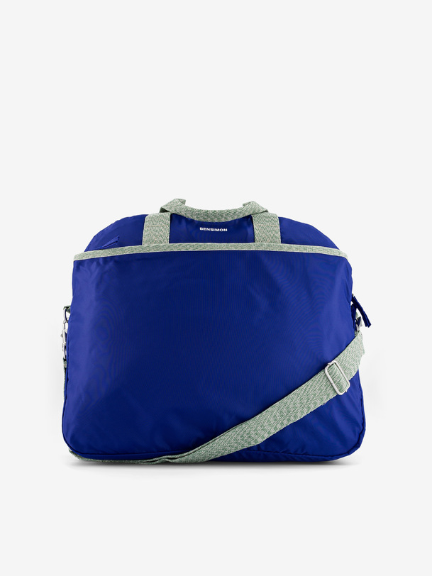 Large-volume tour bag with a large zippered pocket and a front pocket. It features double handles and an adjustable strap. It has four pockets, three of which are zippered, and one interior zippered pocket. Its dimensions are 45 cm long, 21 cm wide, and 38 cm high. Zipper closure.