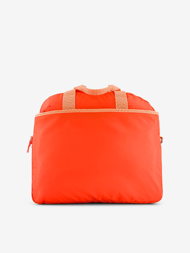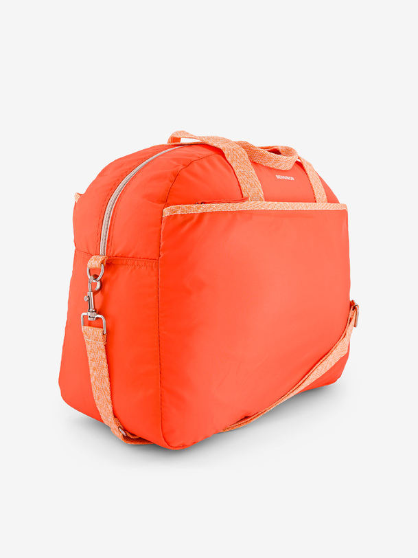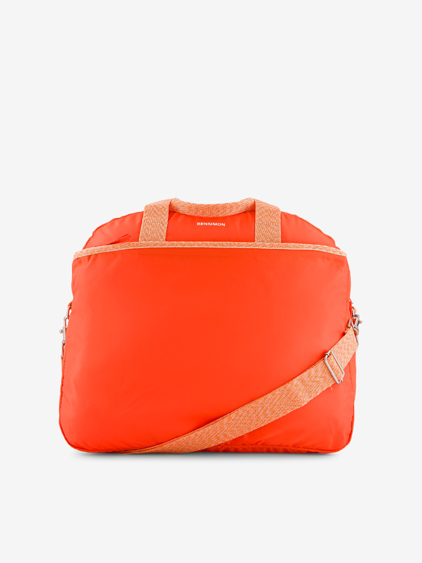 Large tour bag with a large zippered pocket and a front pocket. It is equipped with double handles and an adjustable strap. It has four pockets, three of which are zippered, and one interior zippered pocket. Its dimensions are 45 cm long, 21 cm wide, and 38 cm high. It has a zippered closure.